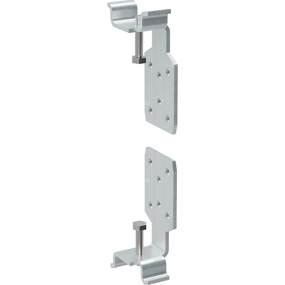 Możliwość późniejszego przykręcenia do szyny systemowej Geberit Duofix Na elemencie konstrukcyjnym Geberit Duofix z zabezpieczeniem Ocynkowane Kąt specyficzny dla wkręcania z lewej i prawej strony Do zabezpieczenia dokładnego położenia profili pionowych Geberit Duofix w szynach systemowych Materiał: Stal