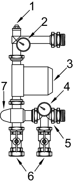 Zestaw mieszający z zaworem trójdrogowym termostatycznym, do rozdzielaczy mosiężnych oraz ze stali nierdzewnej