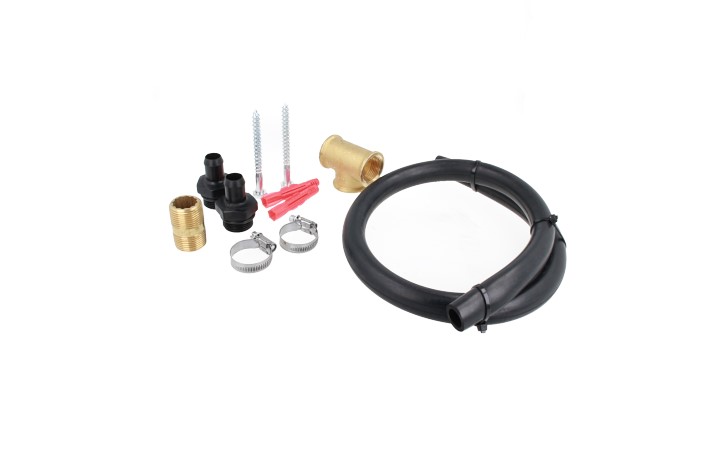 wąż giętki o dł. ok 80 cm do połączenia zbiornika z pojemnikiem na ciecz detekcyjną, trójnik 3/4", nypel 3/4", elementy przyłączeniowe do węża x 2, zaciski oraz uszczelki