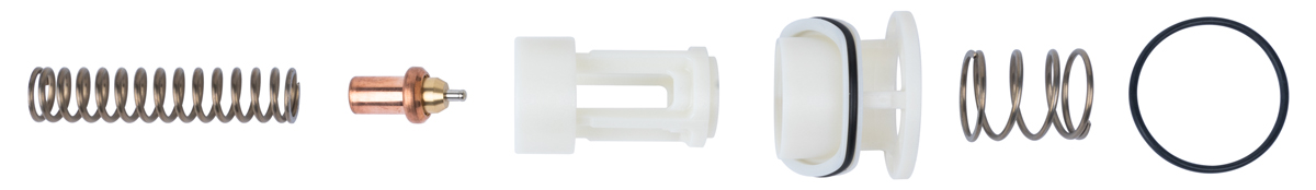 W skład zestawu wchodzą: uszczelnienie, dwie sprężyny dociskowe, wkładka termostatyczna, element mieszający i gniazdo termostatu.
