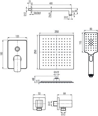 - przyłącze kątowe, pełniące jednocześnie funkcję uchwytu punktowego na rączkę natrysku