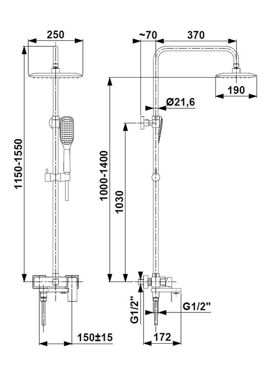 Zestaw natryskowy przesuwny KFA Armatura LOGON + skł. wylewka chrom, wąż 1500 mm, z deszczownicą