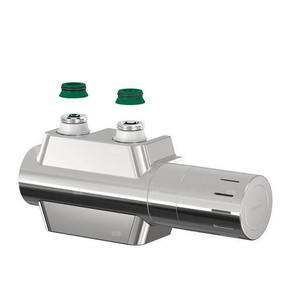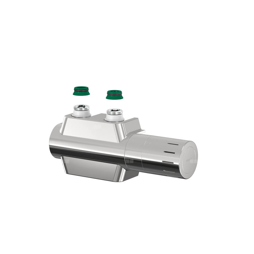 Kompletny zestaw przyłączeniowy z zaworem odcinającym i wstępnie nastawianą wkładką zaworową do grzejników dekoracyjnych (np. łazienkowych), gwint przyłącza M 30 x 1,5, z kluczem do wykonania nastawy wstępnej, konstrukcja kątowa i prosta, z możliwością zamiany na przyłącze z prawej lub lewej strony, zintegrowany zawór napełniająco-spustowy, stożek Eurokonus oraz nypel przyłączeniowy 3/4" x1/2” z uszczelnieniem, rozstaw osi 50 mm,