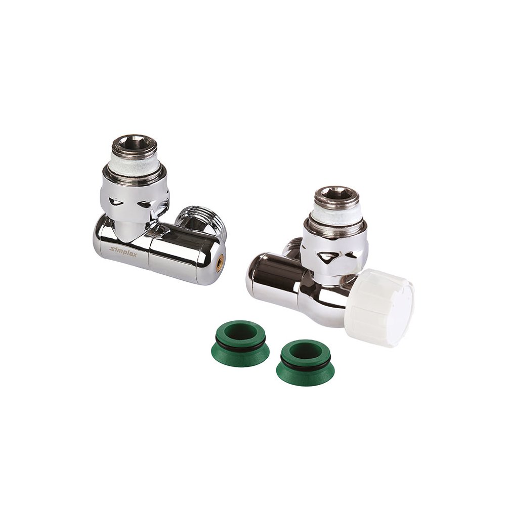 Kompletny zestaw przyłączeniowy z zaworem odcinającym i wstępnie nastawianą wkładką zaworową do grzejników dekoracyjnych (np. łazienkowych), gwint przyłącza M 30 x 1,5, z kluczem do wykonania nastawy wstępnej bez głowicy termostatycznej, obrotowa konstrukcja kątowa i prosta, z możliwością zamiany na przyłącze z prawej lub lewej strony, stożek Eurokonus oraz nypel przyłączeniowy 3/4" x 1/2” z uszczelnieniem, rozstaw osi 50 mm, przesunięcie miedzy osiami 25 mm.