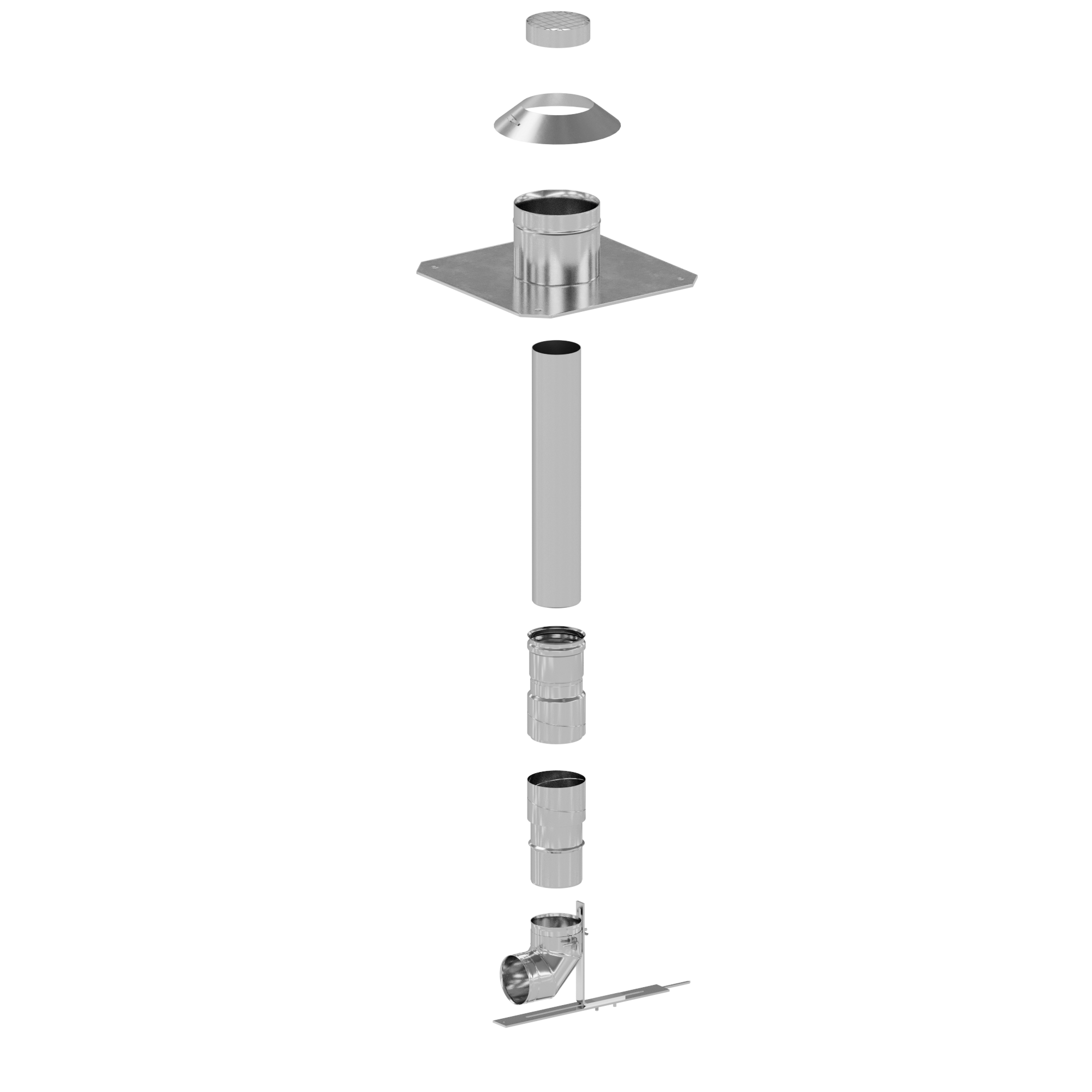 Zestaw zawiera: Kolano 87° DN80, stal podpora do kolana, rura 500mm DN80 stal, płyta dachowa DN80 stal, łącznik dolny do flexa stalowego DN80, łącznik górny do flexa stalowego DN80, deflektor DN80, płaszcz przeciwdeszczowy. Kompatybilny ze wszystkimi kotłami - po dobraniu wyjścia z kotła do podłączenia do kolana.