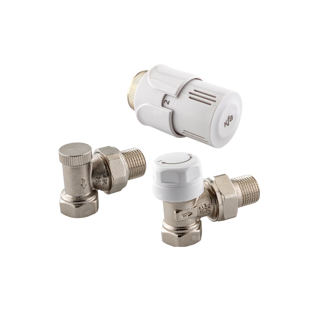 Zestaw termostatyczny grzejnikowy, kątowy, biały, dn15 (1/2'')