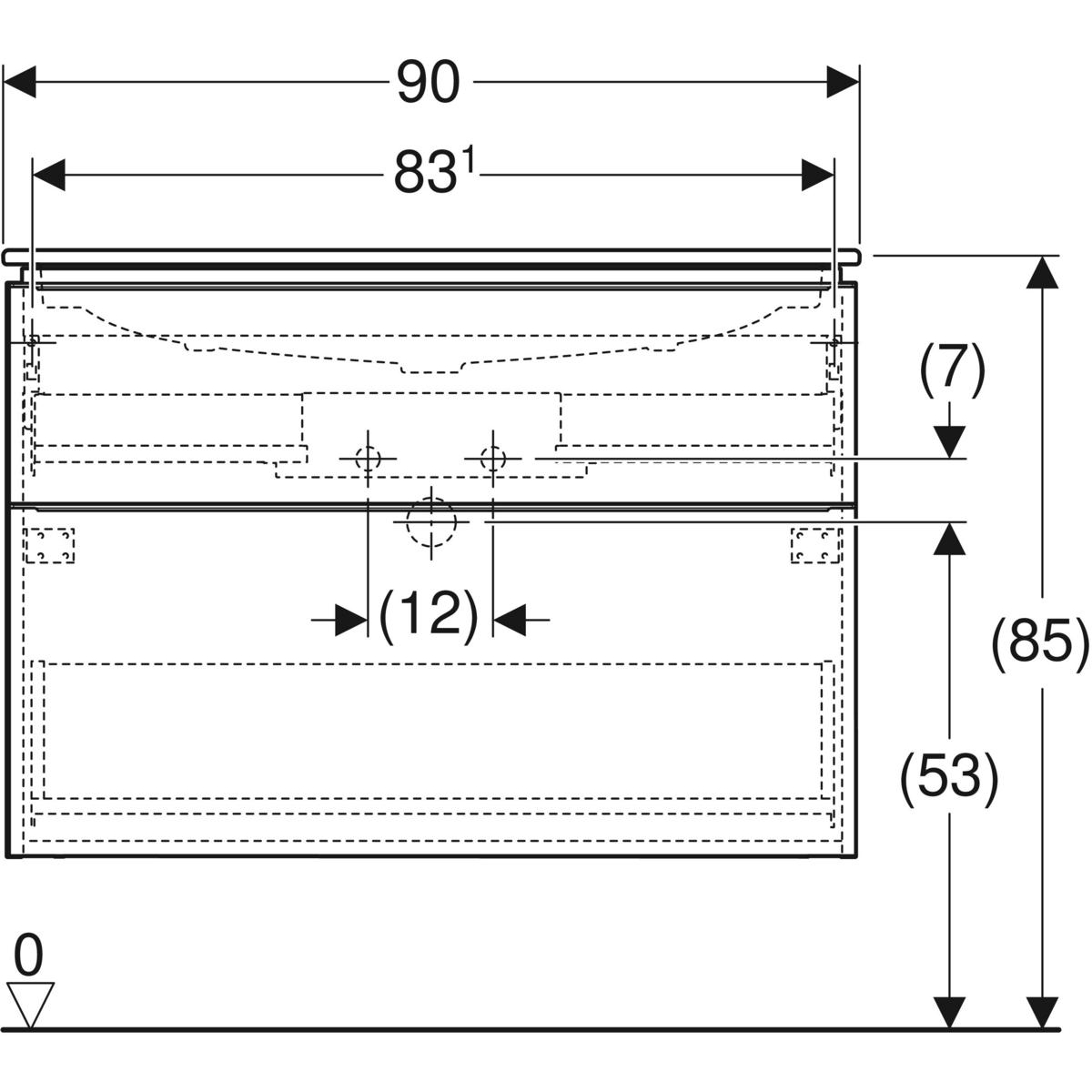 Zestaw umywalki meblowej Geberit iCon slim rim, z szafką pod umywalkę, z dwoma szufladami i zestawem odpływowo-przelewowym do umywalki: B=90cm, Umywalka: biały, Korpus i front: szary piaskowy / lakierowany, wysoki połysk, Uchwyt: szary piaskowy / malowany proszkowo, matowy