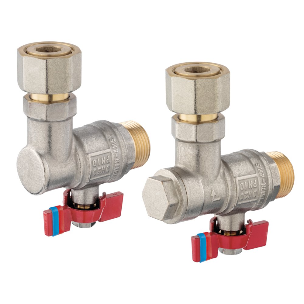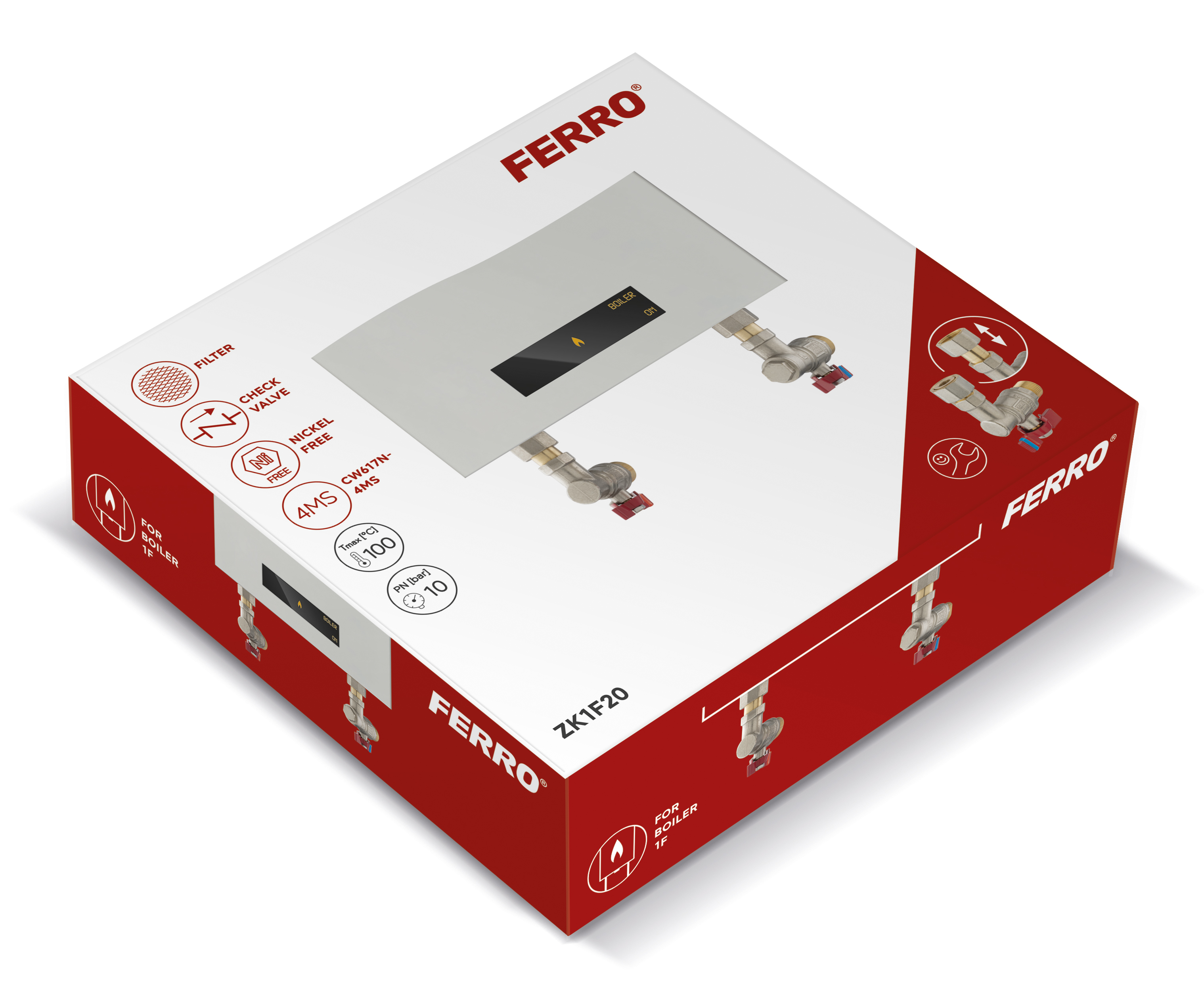 Zestaw zaworów kulowych kątowych z obrotową nakrętką. Zawory dedykowane są pod kotły grzewcze jednofunkcyjne. Zestaw zawiera zawór z filtrem ze stali nierdzewnej AISI304 oraz zaworem zwrotnym oraz zawór kątowy kulowy z uchwytem w postaci motyla pod korpusem zaworu