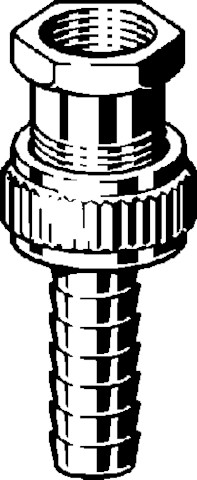 Złączka do rury stojakowej, mosiądz, gw Rp, uszczelnienie stożkowe. Wyposażenie: Radełkowana nakrętka złączkowa, nr wzoru 1842, nr kat. 127 916, Rp: 1 do średnicy wewnętrznej węża: 1 gwint nakrętki G: 1¼