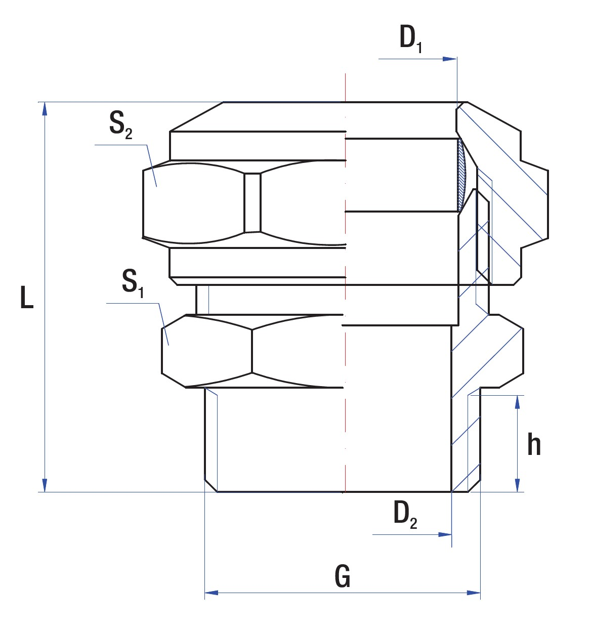 Znamionowa średnica wewnętrzna połączenia 1