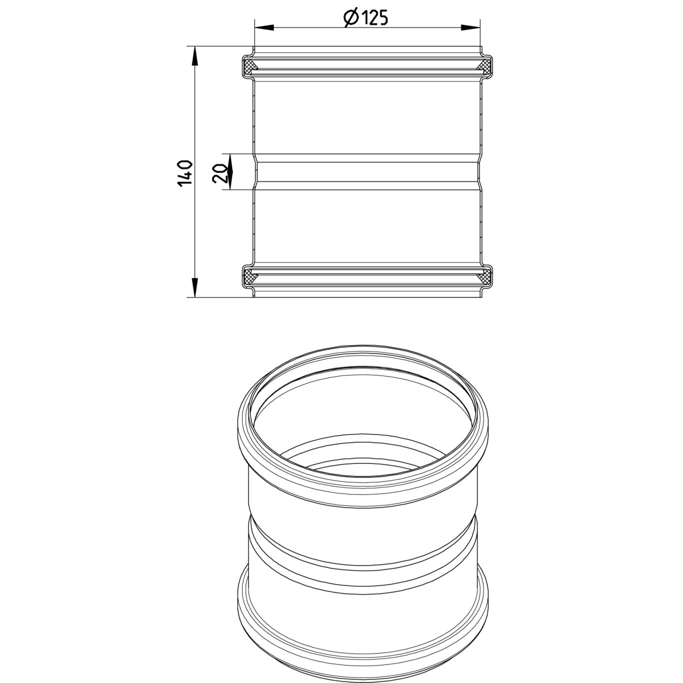 Złącze dwukielichowe DN =125 mm, stal kwasoodporna