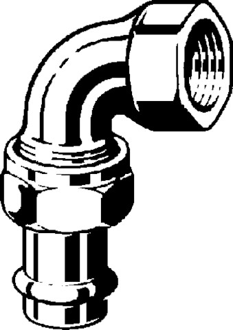Sanpress Inox-dwuzłączka przejściowa 90°, z SC-Contur, stal nierdzewna, przyłącze zaprasowywane, gw Rp, uszczelnienie płaskie, pod kątem. Wyposażenie: Element uszczelniający EPDM, uszczelka płaska EPDM, nakrętka, wielokąt. Wskazówka: Dane materiałowe dotyczą elementów mających kontakt z wodą! Nakrętka złączkowa jest wykonana z niklowanego mosiądzu!, nr wzoru 2355, nr kat. 437 350, dopuszczenie VdS, d: 35 Rp: 1¼