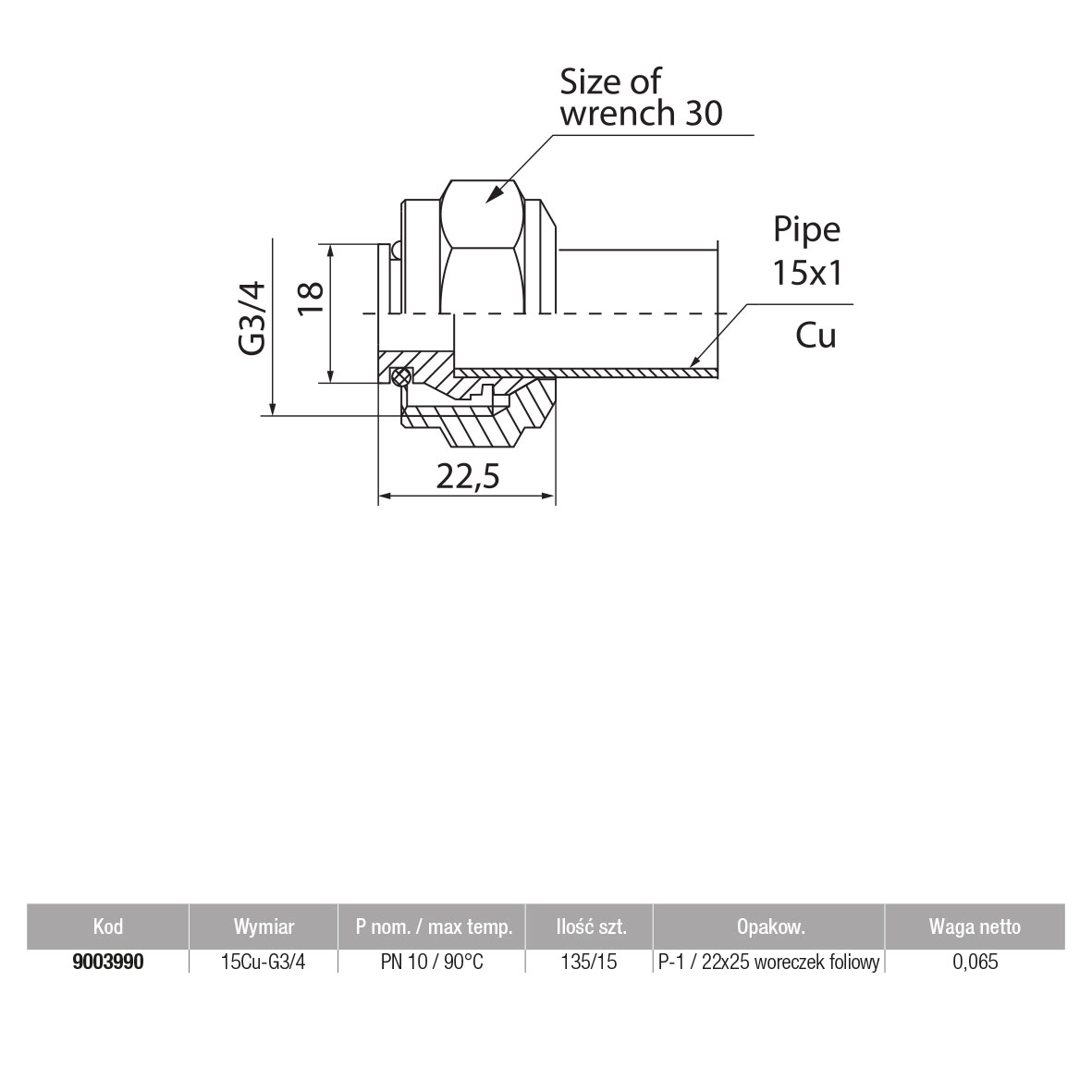 Złącze VALVEX CoPPer, mosiądz (niklowany), 15 mm x 3/4'' (zz x GW)