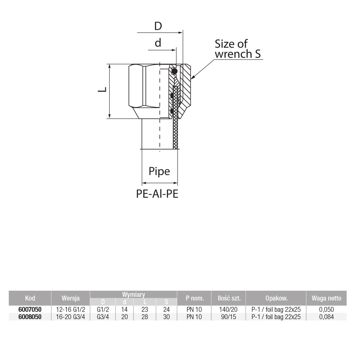 - Materiały: nakrętka, końcówka, tulejka: mosiądz; uszczelnienie: