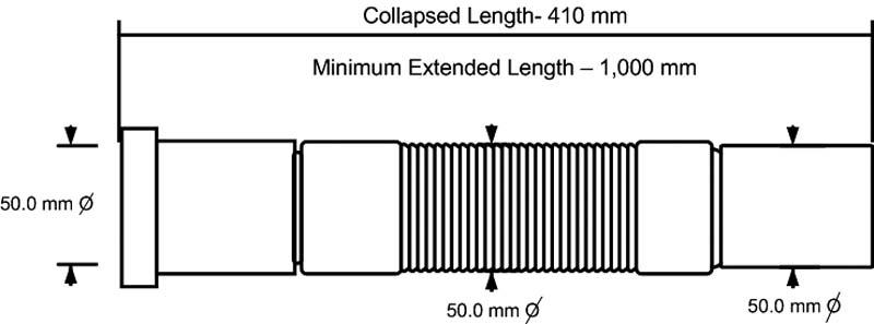 Złączka montażowa harmonijkowa o długości 1000mm, końcówka prosta i mufowa 50x50mm.