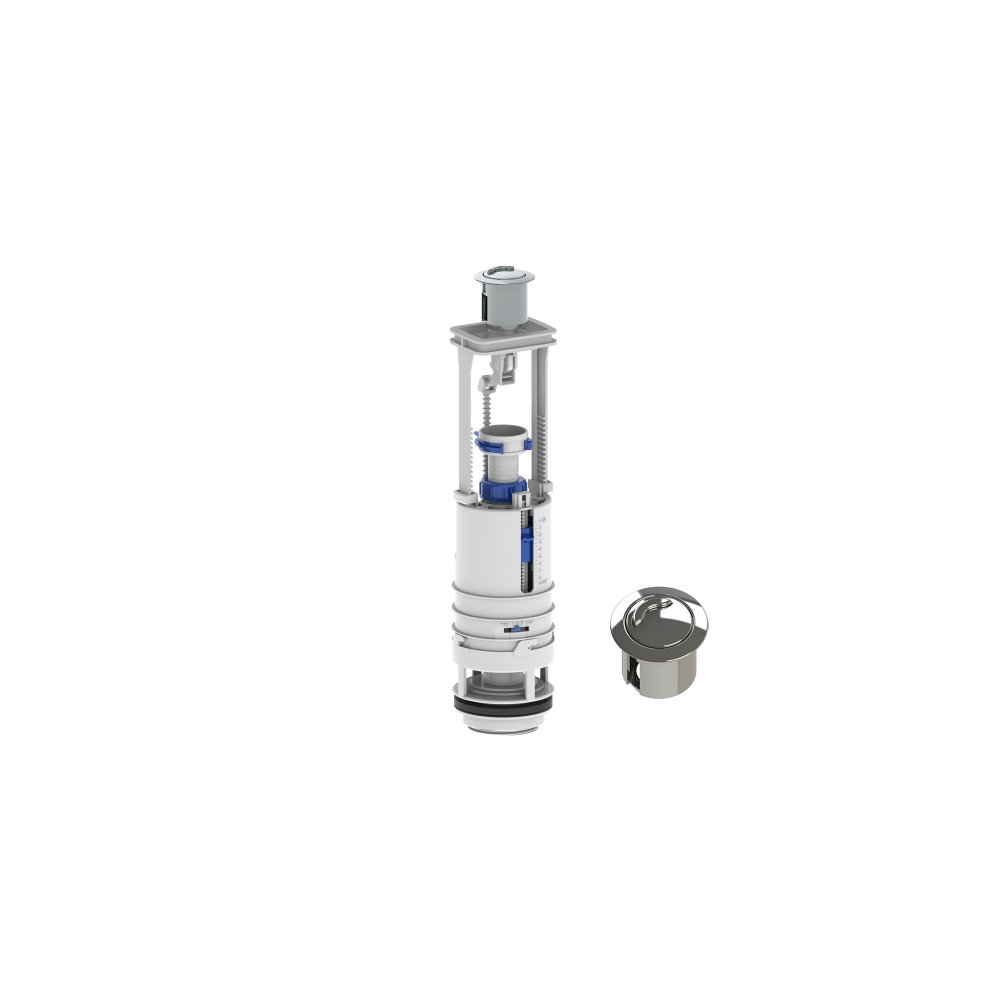Zawór spustowy dwufunkcyjny DUO MAX przeznaczony jest do kompaktów WC o wysokości od 300 do 420 mm. Cechuje go bardzo szeroki zakres nastawiania wysokości oraz ruchoma tuleja przycisku. Dane techniczne